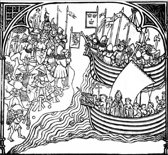 Эти события не упоминаются в русских летописях и шведских хрониках. Некоторый свет на них проливают только немногочисленные источники, касающиеся начала христианизации Финляндии: булла римского папы Александра III архиепископу Упсальскому 1171 г. и Житие святого Эрика (рис. 14).