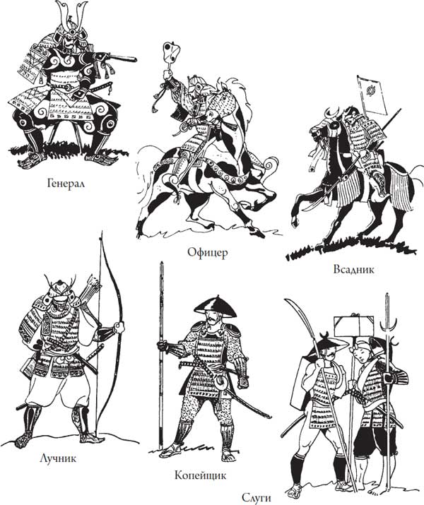 Воинские отряды обычно представляли собой маленькие вооруженные группы, состоящие из лидера, небольшого количества всадников и дополнительного подкрепления из пеших воинов (дзуса). Последние сформировали отдельную прослойку в своем социальном классе и значительно увеличили свою численность, когда в беспокойную эпоху политических волнений XVI–XVII веков у многих крестьян и в меньшей степени городских жителей появился шанс значительно улучшить свое общественное и экономическое положение (как и у европейских наемников), примкнув к быстро возвышающемуся воинскому сословию или же обогатившись военной добычей. Такие пехотинцы получили прозвище «проворные ноги» (асигару), и эта низшая категория воинов полностью переняла этику воинов более высоких рангов, которым они беспрекословно повиновались в мирное время и за которыми без колебаний следовали в самую гущу битвы, со временем начав отождествлять себя с букё, то есть с теми, кто являлся их господами. Из их рядов вышел Хидэёси, один из величайших феодальных лидеров Японии, тот, кто за двадцать лет до Иэясу провозгласил себя военным диктатором (кампаку) всей страны.