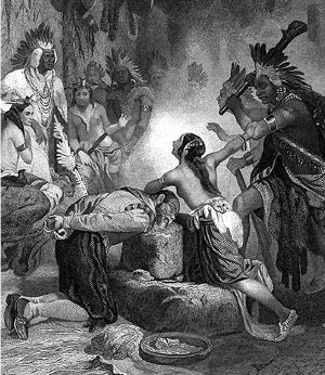 Покахонтас спасает жизнь капитану Смиту.