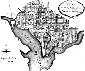 Эскиз планировки столицы США Вашингтона, представленный Пьером Шарлем л'Анфаном Джорджу Вашингтону 19 августа 1791 года и переработанный в 1792 году Эндрю Элликоттом.