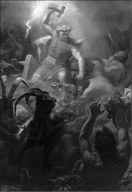 Тор сражается с великанами. Картина М. Э. Винге (1872)