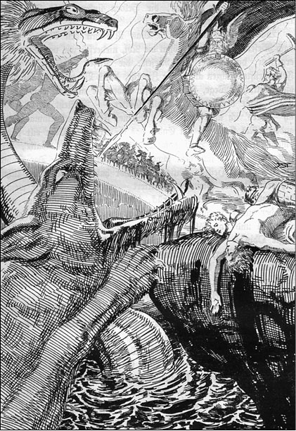 Последняя битва (Рагнарёк). Иллюстрация Ф. Стаффена (1920). Боги и люди против «мерзостных троллей»