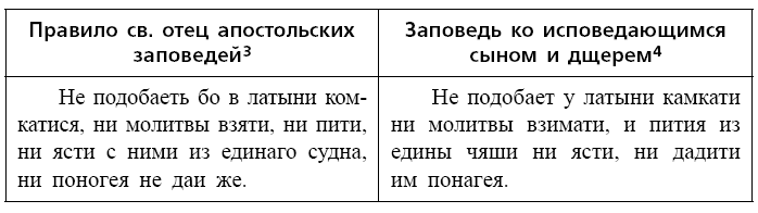 Характерной особенностью этих статей является отсутствие вражды к латинянам, так характерной для документов, возникших в Киеве. В Вопрошании нет упоминаний на теоретические споры между католиками и православными: выразившиеся в дискуссиях об опресноках, нет там и статей, аналогичных запрещению Феодосия Печерского и Иоанна II принимать пищу вместе с латинянами. В Новгороде середины XII в. отсутствовали причины вражды к латинянам. Нифонт упоминает о латинянах в связи с принятием к православию крещённого «в латиньскую веру»[297]. Население Новгорода было далеко от церковных распрей между православными и католиками, как свидетельствует признание Ильи о детях, которые приносятся «к варяжьскому попу» на молитву[298]. Эта же статья доказывает свободное отправление католических обрядов в Новгороде. Среди других иноверцев упоминаются болгары (житель Волжской Булгарин, поддерживавшей тесные связи с Новгородом), чюдин, половчин. Представителям этих народов устанавливается сорокадневный срок поста перед крещением.
