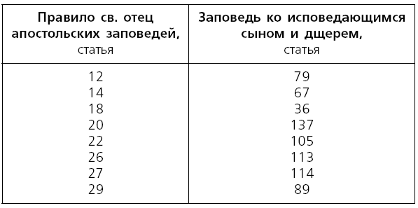 Среди источников, использованных в Правиле, мы находим также епитимийник, содержащийся в Кормчей XIII – начала XIV в. (РГБ. Ф. 256. № 230. Л. 119 об. 122)[249]. В этом документе есть 16-я статья, близкая к 33-й статье Правила, и 13-я статья, близкая к 9-й статье Правила; 17-я статья Правила близка к 27-й статье «Некоторой заповеди», одного из древнейших русских епитимийников[250].
