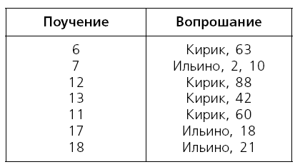 С. И. Смирнова). В 4-х случаях устанавливается близость с вопросами Кирика. Но здесь необходимо указать на то, что вопросы Кирика ни в одном случае не цитируются полностью и дословно.
