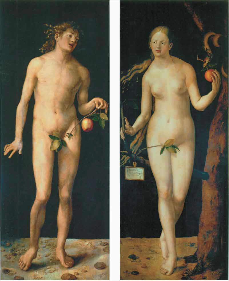 «Оппозиции в произведении искусства», т. е. противоположности (образы, формы, элементы и т. п.). Рассмотрим главную оппозицию: Инь-Янь, лингам-йони, мужское-женское. Противоположность мужского и женского начал как основной принцип алхимического символизма. Синтез этих противоположностей как высшая и конечная цель алхимии. Но нетрудно заметить, что отнюдь не каждое изображение стоящих, лежащих или сидящих рядом мужских и женских фигур можно назвать символическим или тем более соединенным по принципам метафизического синтетизма. Соединены же они чаще всего по законам человеческой чувственности и сладострастия. Возьмем для примера изображения Адама и Евы Дюрером (Мадрид, Прадо). «Оппозиция» бросается в глаза. Со знанием дела подчеркнуты атрибутивные формы женственности и мужественности. Любовь к пропорциям и прочим соотношениям человеческих тел в соединении с виртуозным и продуманным до последнего штриха мастерством привела к созданию шедевра, но метафизико-синтетическая значимость этих изображений равна нулю. Созерцание образов Адама и Евы кисти Дюрера доставляет эстетическое наслаждение, но данное сочетание противоположностей (мужское-женское) не имеет никакого метафизически-синтетического смысла. Следовательно, оппозиции способствуют созданию «художественно значимого произведения» лишь в той степени, в какой художественно одарен пользующийся ими живописец (график, скульптор и т. д.).