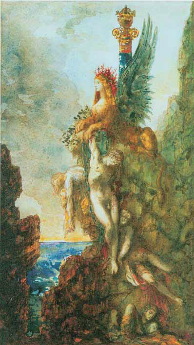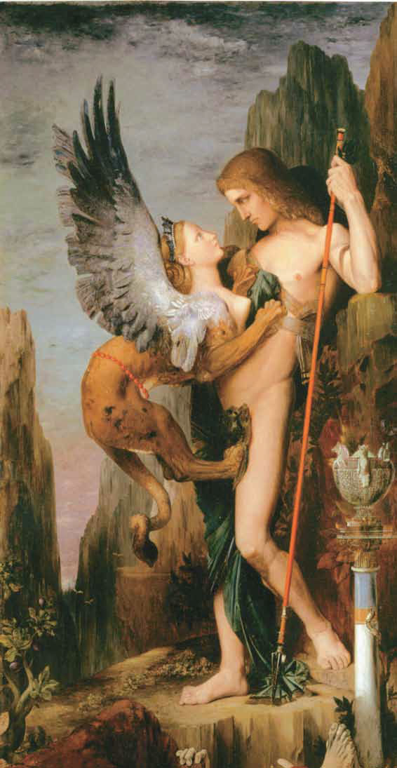 У Гюстава Моро «встреча Эдипа со Сфинксом» снова получила характер символа, выведенного из сферы декоративности. Образ символически выражает, скорее всего, не столько мифологическую ситуацию, сколько экзистенциальное событие в глубинах – имагинативно предрасположенного – сознания художника. По своему характеру его можно назвать интровертированным в отличие от декоративных парковых скульптур и фарфоровых безделушек XVIII в., давших экстравертированный образ Сфинкса, полностью лишенный мифологически-мистериального смысла.
