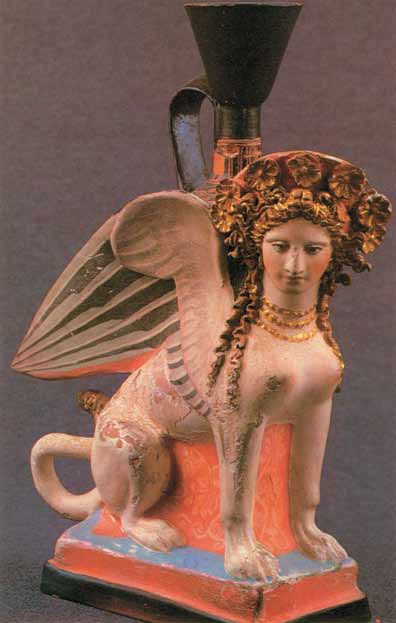 Чтобы – хотя бы в минимальной степени – приблизиться к постижению мистериально-мифологических (в терминологии МС – астрально-оккультных) корней сфинксологии, надо попытаться оживить в сознании мыслеобразы, возникающие из глубин Античности. Синтетический характер Сфинкса становится понятней, если представить себе, что этому синтезу предшествовал еще более сложный теогонический синтез, порождением которого и явился Сфинкс. А явился он воистину из бездны как плод соединения Тифона и Эхидны.