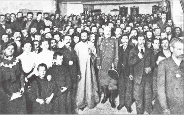 Гапон и градоначальник И.А. Фуллон среди рабочих