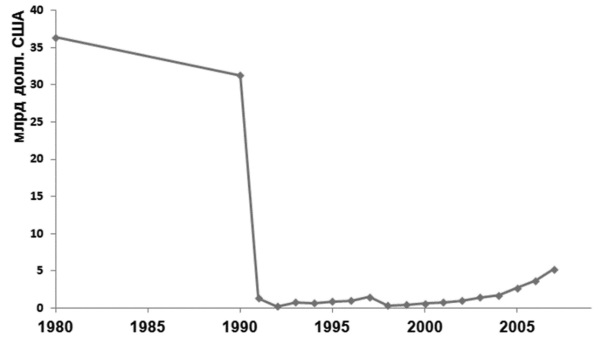 Рис. 20. Динамика расходов на науку в России (в млрд долл. США)