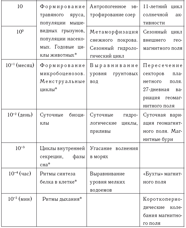 И этот раздел мы завершим характеристиками биологического времени из книги Н.И.Моисеевой с соавторами[96]: