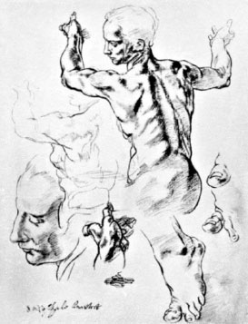 Рисунки русских мастеров Антона Павловича Лосенко, Александра Андреевича Иванова, Ильи Ефимовича Репина (рис. 11) и многих других дают прекрасные примеры различных приёмов использования материала.