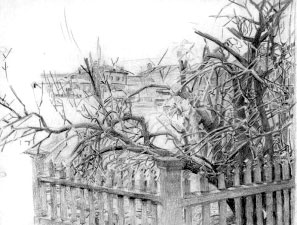 Особую манеру наложения штрихов Михаилом Врубелем невозможно спутать с почерком другого художника. Что бы он ни изображал – розу в стакане, пейзаж, ребёнка в кроватке, – нервные, угловатые, перекрещивающиеся врубелевские штрихи узнаются безошибочно (рис. 16).