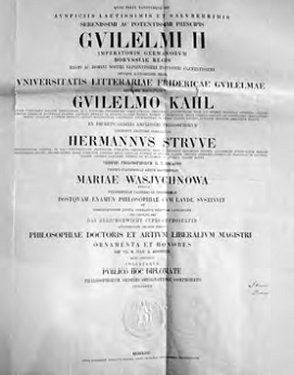 Диплом доктора філософії хіміка Марії Васюхнової, виданий Університетом Фрідріха-Вільгельма в Берліні у 1909 році