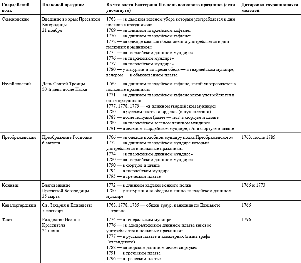 В дни полковых праздников пяти из шести гвардейских полков, а также флота императрица облачалась в особый наряд, который стало принято называть мундирным платьем. Этот костюм изменялся, дополнялся деталями, «вырабатывался» на протяжении не одного десятилетия и назывался «длинным гвардейским мундиром» (ил. 1, 2 во вклейке).