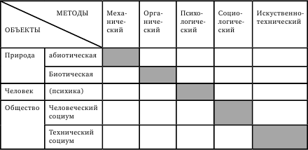 Данное обстоятельство дает редкую возможность построить матрицу «метод – объект» науки.