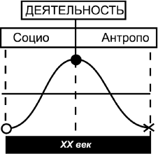 Пределы деятельностной парадигмы (как искусственной) – деятельностная, с социальной доминантой (А.Н. Леонтьев) [218], техно-деятельностная (А.А. Богданов, А.К. Гастев) [40; 246] и деятельностная, с личностной доминантой (прагматизм Д. Дьюи) [107]. Социальное и техническое, как мы уже отмечали, входят в состав общественного. В этом случае парность внутри парадигмы обеспечивается в виде «общественного – личного». Деятельность связывает общество и личность. Поэтому мы говорим не о специальных (социо- и антропо-) парадигмах, а об их динамическом сочетании в ядре деятельности.