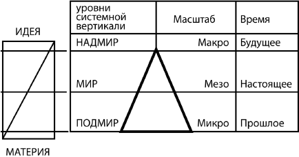 Поскольку нас интересует образ, а воплощением образа служит форма, обратимся к понятию «хронотоп». Хронотоп – временная и пространственная экспликации формы, поэтому иерархические уровни модифицируются масштабной пространственной «тройкой» («топос»): «Макро – Мезо – Микро» – и «тройкой» временных модусов («хронос»): «Будущее – Настоящее – Прошлое». Все классические исследователи образа в искусстве основывались на таком наборе параметров.