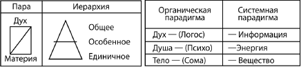Табл. 4. Архетипы пары и тройки в органической и системной парадигмах: