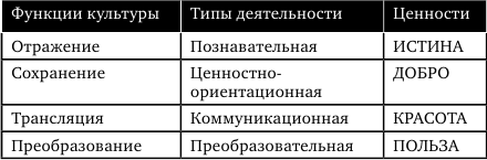 Сохранение духовной целостности общества – основная функция культуры: то, что присуще любой культуре на системном уровне. Это – монадное содержание культуры, ее назначение, ее миссия в обществе.