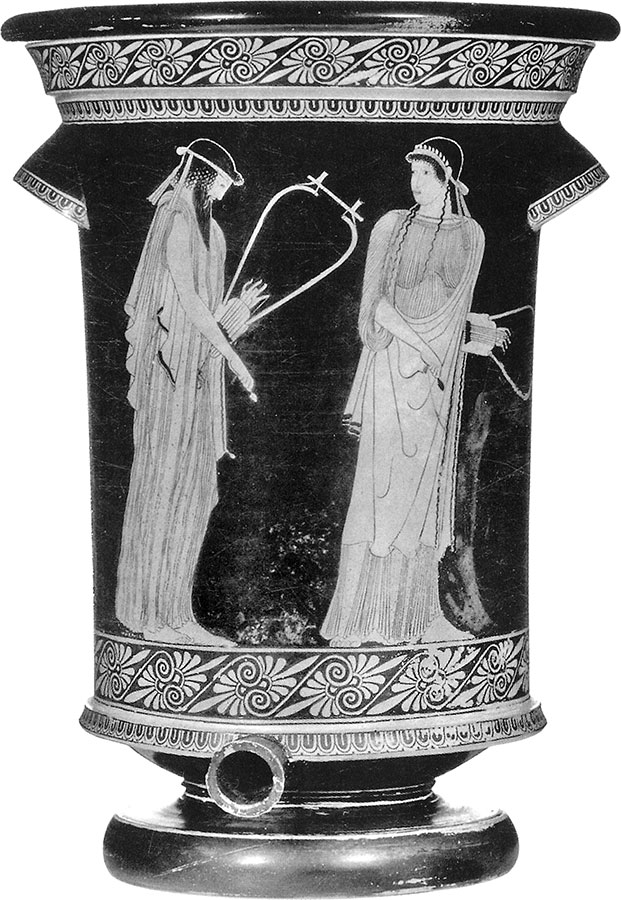 Сафо и Алкей. Поэты VII в. до н. э. Роспись калафа. V в. до н. э. Музей античного искусства, Мюнхен