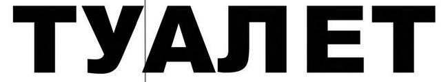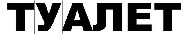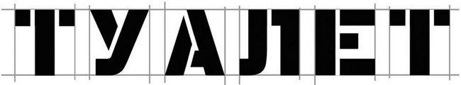 Но, как говорится, «шли годы, смеркалось…» Художники-шрифтовики все вымерли или ушли в управдомы. Почти сбылась мечта Ильича – теперь каждая кухарка может сварганить на своём ПК любую красивую афишку, нимало не задумавшись. Однажды киносудьба свела меня с барышней, гордо назвавшейся дизайнером и уверенно заявившей, что она, кроме всего прочего, обучалась и шрифтовому дизайну. Обрадовавшись и извинившись за задание, я попросил её сделать трафарет для набивания на стене простого слова «ТУАЛЕТ». Она сразу же начала старательно размечать бумагу, и к концу рабочего дня гордо осчастливила меня плодами рук своих. Выглядело это примерно так: