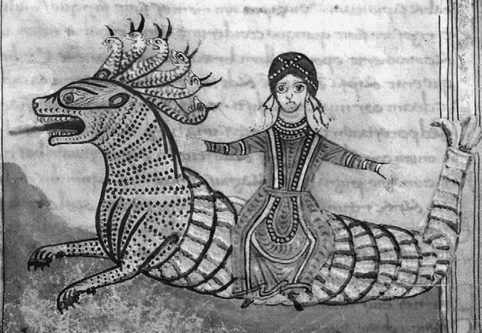 Рис. 45. Иконография блудницы вавилонской восходит к изображению богини Исиды на собаке Сириусе с римских гностических монет Valenciennes Biblioth?que municipale. MS. 99, fol. 31 r.