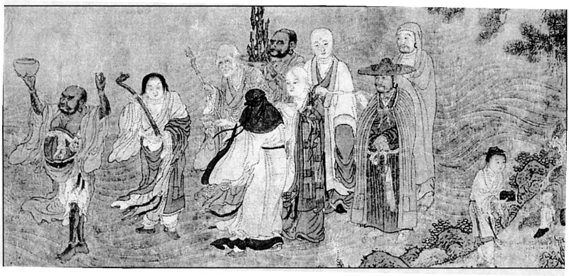 Восемнадцать архатов поклоняются богине Гуаньинь.