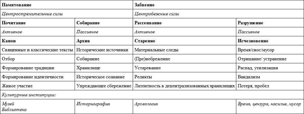 Подобная парадигма, встроенная в сам язык, объясняет, почему памятованию исследователи уделяют гораздо больше внимания и отдают больше усилий. Но не забыли ли мы, занимаясь развитием мемориальной культуры, изучением индивидуальной и коллективной памяти, о самом забвении?[4]