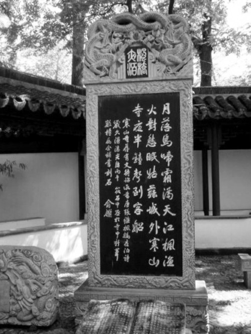 Стихотворение «Стоя ночью на мосту», написанное знаменитым ученым позднего периода династии Цин Юй Юэ на мемориальной доске, что расположена на террасе храма Ханьшаньсы