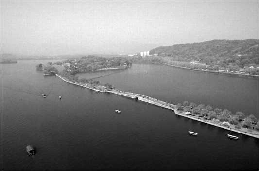 Благодаря прекрасным пейзажам озера Сиху город Ханчжоу прославился как «рай на земле». Поперек озера стоят две плотины – Су-гуна и Бай-гуна. Над плотиной Су-гуна склоняются бледно-зеленые и нежно-желтые ветви ивы. Путешественники могут пройтись по плотине, пробравшись через ветви ивы, или на весельной лодке проплыть сквозь пролеты арочного моста. Если с арочного моста на дамбе посмотреть вверх, будут видны горные вершины в облаках, если посмотреть вниз – можно увидеть рыбачьи лодки, а посередине раскинулся мост, словно радуга, и все это единая композиция. Невозможно представить себе водную гладь озера Сиху пустой: чего-то будет не хватать.