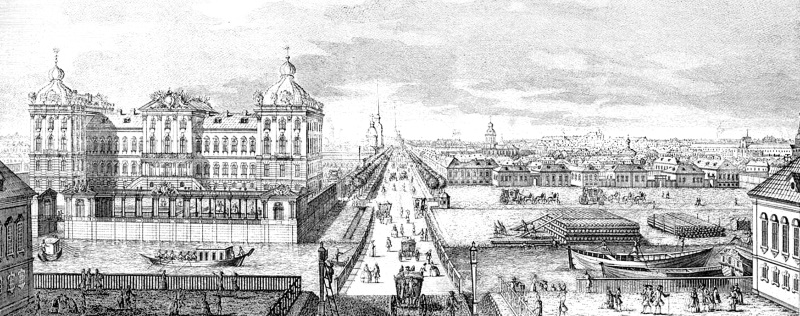 Картина «Вид Аничкина дворца и Невского проспекта в начале царствования Екатерины II», написанная по мотивам рисунка М.И. Махаева