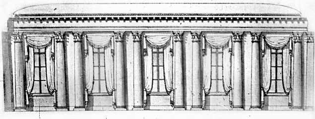Следующий ремонт Аничкова дворца как главного здания Кабинета Е.И.В. произведен распоряжением Александра I архитектором Л. Руска в 1801–1803 гг.[45]. В это время на фасаде дворца, обращенного к Невскому проспекту, появились двухколонные портики, перепланировали и заново отделали ряд интерьеров, художник Ф. Щербаков расписал Судейскую комнату[46].