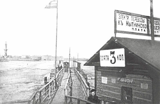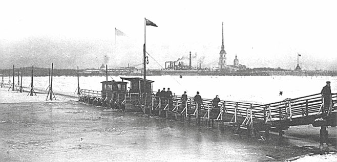 Зимой 1895 г. от спуска-пристани у Зимнего дворца по льду Невы проложили однопутную линию электрического трамвая до Мытнинской набережной. Вагоны расходились на специально устроенных разъездах. Стоимость проезда составляла 3 коп. Кроме этой линии, устроили еще три: