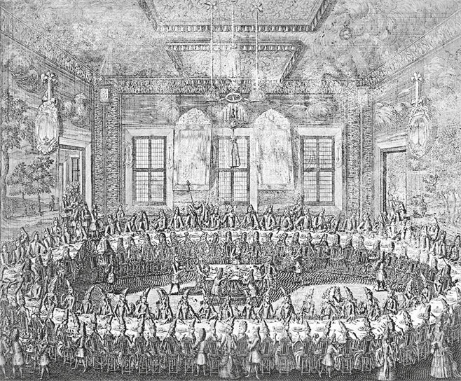 После брачной церемонии в зале второго этажа устроили торжественный обед. Стены зала украшали шпалеры и венецианские зеркала. Рассказывают, что в 1724 г., незадолго до своей смерти, Петр разбил одно из зеркал в этом зале. Указав супруге на зеркало, Петр якобы сказал ей: «Ты видишь это зеркало? Сделанное из простых материалов, оно, благодаря искусству, стало прекрасным украшением здания, но я могу возвратить его в прежнее ничтожество».