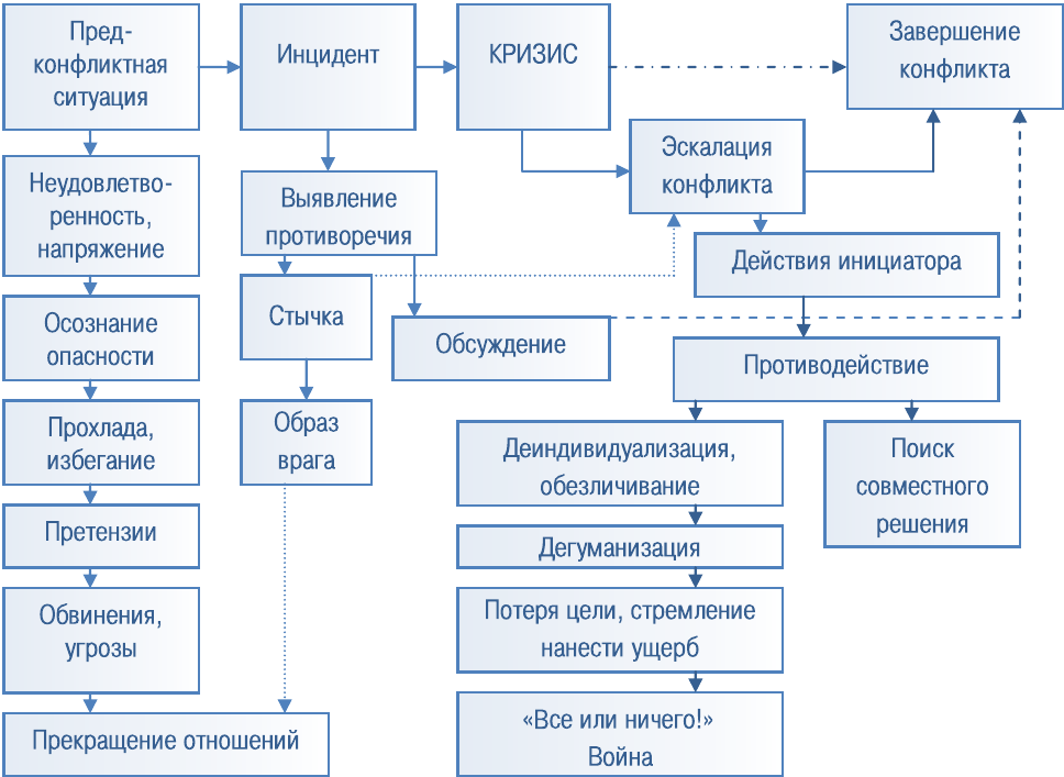 Далее приводится схема развития конфликта по Карпенко с соавторами [7].