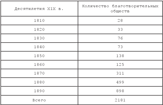 Расцвет благотворительности приходится на вторую половину XIX – начало XX вв. – период «Великих реформ» в России, высокого социально-экономического уровня развития государства. К этому времени благотворительность сложилась в общероссийскую систему солидных обществ и учреждений государственного, церковно-общественного и частного вспомоществования «недостаточным» (бедным) и нуждающимся. Наиболее признанными в обществе благотворителями были Ведомство учреждений императрицы Марии, Императорское человеколюбивое общество, Общество Красного Креста, городские и земские благотворительные учреждения, сословные благотворительные учреждения. Существовала широкая сеть церковно-приходских обществ и братств, благотворительных заведений при церквах иноверных исповеданий, иностранных благотворительных учреждений. Были организованы благотворительные учреждения для увечных воинов, их семей и вдов, лиц, убитых на войне; общества попечения о слепых, глухонемых, калеках, идиотах и эпилептиках; благотворительные общества при больницах; общества попечения об освобожденных из тюрем и о семьях заключенных. Получили распространение благотворительные заведения разных обществ и частных лиц, многие из которых имели профессионально подготовленных сотрудников, служебную форму одежды по образцу государственного служащего [2, – с. 12].