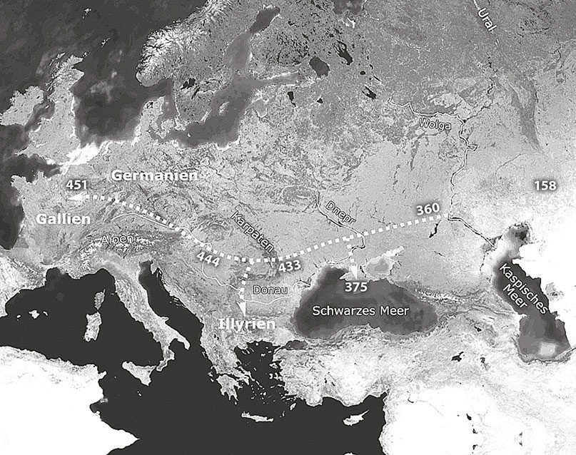 Карта продвижения гуннов. Она вызывает много вопросов у географа