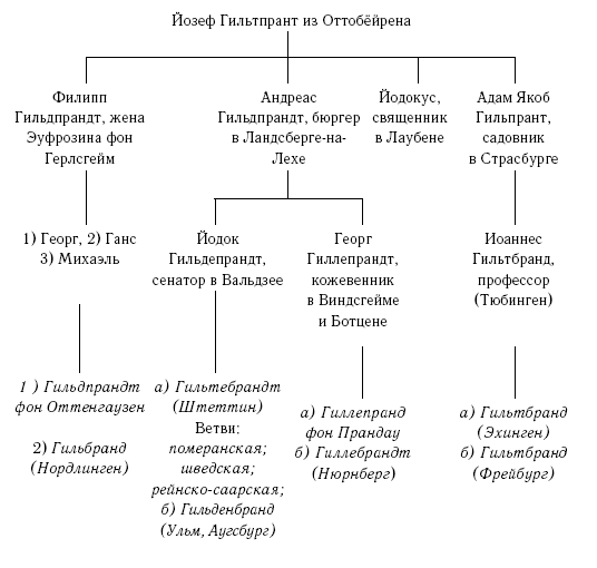 Представим теперь графически потомство Йозефа Гильтпранта из Оттобёйрена и родовые ветви, произошедшие от него.