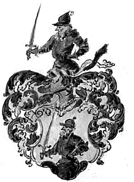 Ганс Баптист, Георг и Михаэль, сыновья кожевенника Георга Гильдепрандта (Гиллепранта) от второго брака с Маргаретой Гадерсдорфер, были пожалованы императором Максом II в Вене 4 декабря 1574 года «улучшенным» гербовым дипломом с дарственным артикулом. «Родословная книжка баронских фамилий за 1939 год», часть B, ошибочно утверждает, что этот диплом получили не вышеназванные, а их троюродные братья Иоахим и Симон (ветвь Филиппа Гильдпрандта из Ландсбергана-Лехе). Данная путаница вполне объяснима: дело в том, что в дипломе от 1574 года имена сыновей Георга не значатся, а дворянские документы того времени сохранили лишь память о Симоне и Иоахиме, возведенных в рыцарское достоинство в 1579 году. А между тем, в гербовом дипломе, дарованном «братьям Гиллепрандтам» в 1574 году мы читаем описание их новоявленного герба: «На золотом щите изображена тройная черная гора, из которой по пояс вырастает закованный в латы человек с длинной седой бородой. На голове у него штурмовой шлем, его левая рука упирается в бок, а правая сжимает наготове блистающий серебром меч с черным эфесом. В клейноде – бурилет с тем же выходящим седобородым рыцарем, держащим меч, но без горы. Покрывала черно-золотые». Удивительно, что вырастающий из горы рыцарь – практически одно и то же лицо со знаменитым персонажем русских былин богатырем Святогором. Этот герб, согласно старинному гербовнику нюрнбергских родов Розенвальда (иллюстрация 81, геральдический рисунок в левом верхнем углу), сохранился у фамилии бюргеров Гиллебрандт (Гильдебрандт) из Ансбаха, франконского города по соседству с Бад-Виндсгеймом, представители которой переселились в Нюрнерг и стали там известными ювелирами. Основателем нюрнбергской ветви был упомянутый выше Ганс, кузнец в Ансбахе и сын кожевенника Георга Гильдепрандта, принявший лютеранское вероисповедание. Его старший сын Фридрих (1555–1608), ювелир и серебряных дел мастер, приобрел бюргерское право Нюрнберга 14 октября 1581 года, тогда как Лукас, младший сын, был внесен в бюргерскую книгу города только 6 июня 1586 года после сдачи экзамена на степень мастера серебряных дел. С представителями этой ветви сложатся тесные деловые и родственные взаимоотношения уже в XVII веке у шведского фактора в Нюрнберге Фридриха Гильтебрандта.