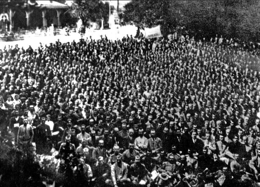 Съезд, разумеется, состоялся. Его планировали открыть 4 (17) июня в Троицком народном доме, но приехало больше делегатов, чем этот дом мог вместить. Поэтому открытие состоялось днём позже в городском (оперном) театре. В первый день прибыло около двух тысяч делегатов – приблизительно 1250 от фронта и 750 от тыла – которые представляли, по одной оценке, приблизительно 1,4 млн человек, по другой – около 150 тысяч254. Заняты были не только все места для публики, но и оркестровая яма.