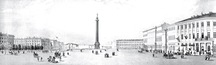 Вид Дворцовой площади на панораме Невского проспекта работы В.С. Садовникова, изданной в 1830-1835 гг. А.М. Прево