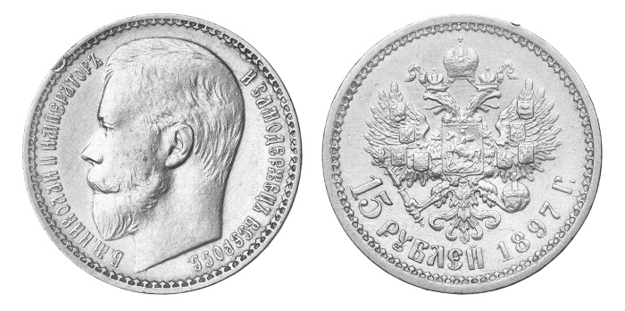 Здесь стоит упомянуть о проведенной С.Ю. Витте в 1897 г. денежной реформе. В результате этой реформы установлен золотой монометаллизм рубля (он стал свободно обмениваться на золото), а сам рубль при этом девальвировался на 7 . Золотой рубль, содержавший 0,774234 г золота пробы 900 и выше, заменил серебряный рубль. В обращение вошли монеты достоинством 15, 10, 7,5 и 5 руб. Монета достоинством 15 руб. называлась империал, достоинством 10 руб. – червонец. Они чеканились до 1900 г., после чего стали постепенно изыматься из обращения.