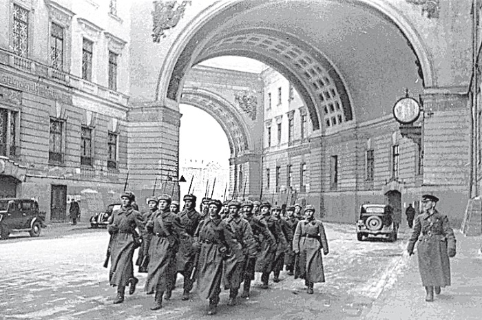 После войны арка Главного штаба еще раз сыграла ту роль, для которой она предназначена по своему смысловому значению. 8 августа 1945 г. под ней торжественно прошли вернувшиеся в родной город солдаты и офицеры Ленинградского гвардейского корпуса.