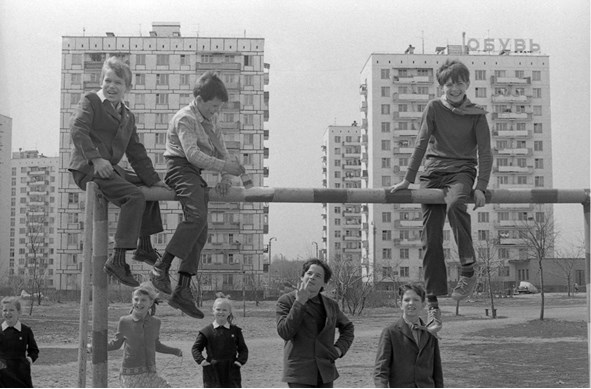 В кадр, сделанный Ниной Свиридовой и Дмитрием Воздвиженским в середине 70-х годов, попадают дома типовой застройки, теплая ветреная погода, растрепанные веселые школьники, занятые покраской футбольных ворот, и, кроме этой беспечной будничности, – едва различимая тревога, побуждающая увидеть территорию позднесоветского города как утопическое пространство (ил. 1). Неочевидность и ненадежность подобного зрительского впечатления меня не только не смущают, но, напротив, интересуют. Коль скоро сомнительно, что моя готовность приписать фотографии утопическую ауру в данном случае будет разделена и поддержана кем?то еще, – значит, такая «аура» не сводится к легко опознаваемым, закрепленным в культуре визуальным канонам. Но следует ли отсюда, что эти впечатления исключительно индивидуальны и ситуативны, что они не имеют никакого отношения к общему, социальному опыту?