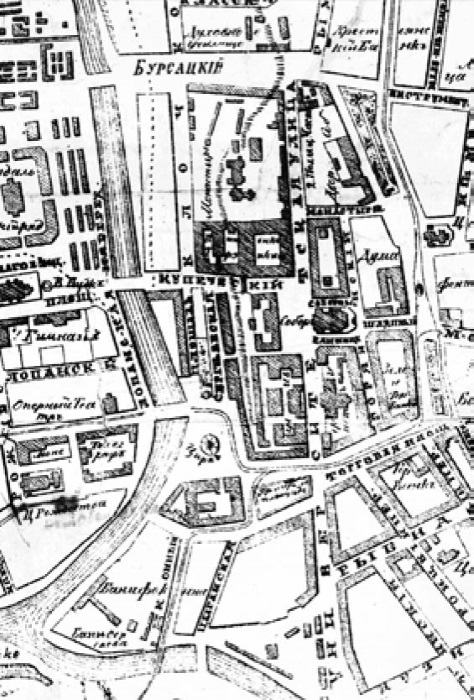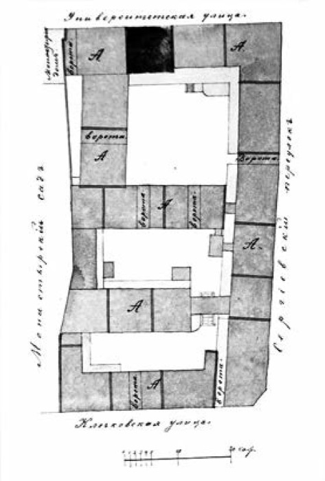 Стоит отметить, что в южной части Университетской улицы на Рыбной площади размещались чёрные ряды, принадлежащие городу, и чёрные ряды купца Бородина.