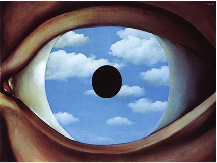 Вначале о направлении взгляда. Одна из самых провидческих картин Рене Магритта – это изображенный крупным планом глаз, отражающий голубое небо и плывущие по нему облака. Это мог бы быть глаз Ива Кляйна в тот день, когда он лежал на пляже и глядел ввысь, мысленно рисуя свое имя на небосводе. Но название картины Магритта – «Фальшивое зеркало» – должно нас насторожить.