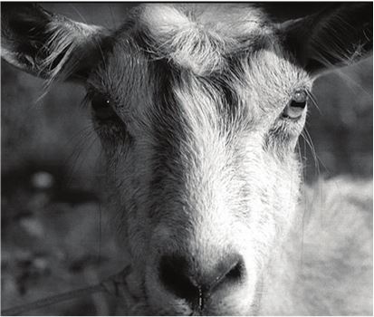 Заглядывая в глаза животного, мы заглядываем в древний мир. Миллион лет назад на земле было гораздо больше животных и гораздо меньше людей – в африканской саванне на четыре квадратных километра приходилось всего два человека, – так что наши предки жили в более тесном соседстве с животными, чем большинство из нас. Первые люди узнали бы этот образ. Они смотрели в глаза животному перед тем, как убить его или чтобы обратить в бегство. Тоже своего рода игра в гляделки. Затаился ли в глазах козла страх? Чувствует ли он наш страх? Так ли уж отличается звериный взгляд от человечьего? Можно ли сказать, что наши предки относились к животным с почтением? Понимали их? Пытались поставить себя на их место? Или этот взгляд иного существа слишком напряженный и тревожащий – или слишком краткий, – чтобы мы успели подумать обо всем этом. Возможно, подобные мысли приходят, если приходят, уже после того, как мы отвели взгляд. А что, если глаза козла – очередное фальшивое зеркало? Миг быстротечен, хотя в стихотворении Роберта Фроста «Двое видят двух» мгновение обретает недвижность камня.