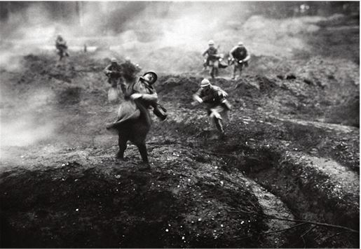 Рассматривая этот кадр, мы проникаем взглядом в движение, в мгновение и в смерть. Перед нами французский солдат. Мы под Верденом на северо-востоке страны в 1916 году. Битва длилась 303 дня, и в ней погибли 714 231 человек, как погибает на наших глазах этот солдат. В свой последний миг он словно бросает вызов притяжению или пространству – отсюда искажение, расфокусированность. Мы вглядываемся в лицо на фотографии, и что мы видим? Олицетворение горя, принесенного войной? Или паренька лет двадцати с усиками, которому еще жить и жить, а он умирает здесь на наших глазах?