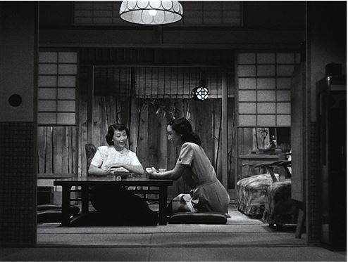 Кадр как будто удерживает женщин внутри себя, не выпуская их наружу, и этот мотив вновь и вновь звучит в фильме, перекликаясь с темой «дом и созерцание». Женщина справа – двадцатичетырехлетняя Норико, чьи домочадцы полагают, что ей следует выйти замуж, и подыскивают для нее жениха. Согласно их представлениям о том, как должна строиться жизнь японской женщины, ей пора покинуть родное гнездо. Она должна задуматься о замужестве, о будущем и о собственном доме. Норико, однако, спокойно и мягко отвергает их план. Ей кажется, что ее уход не должен быть столь однозначно предрешен. И дом словно не хочет ее отпускать.